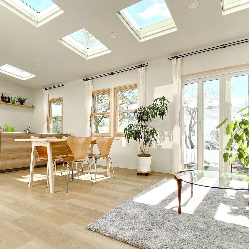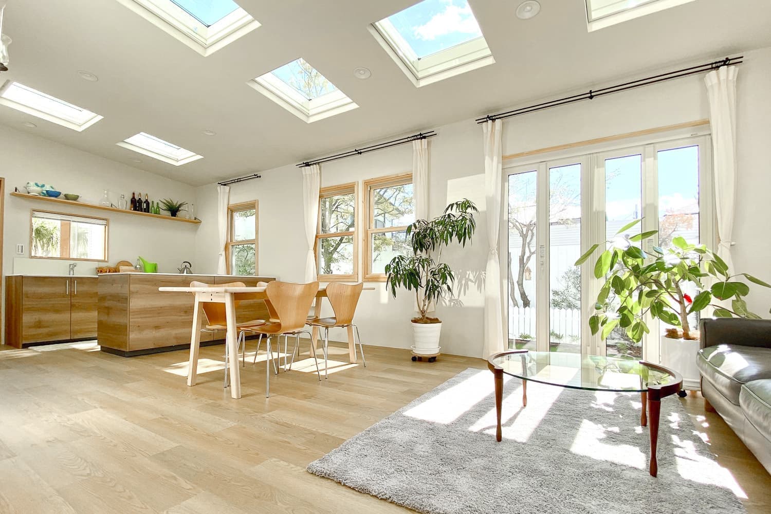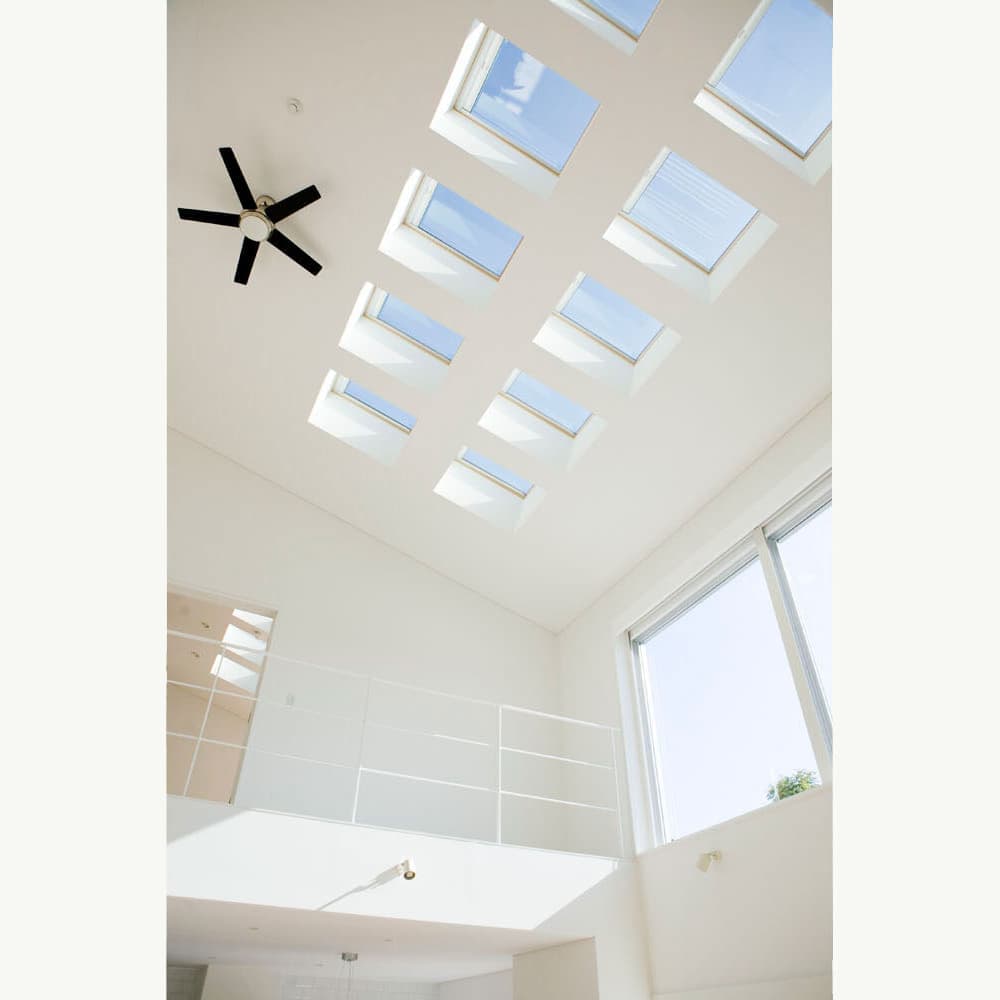 完全遮光ではないですが、天上、南側の2段の大きな窓などは遮光できます。