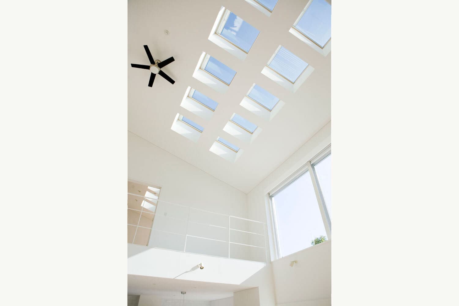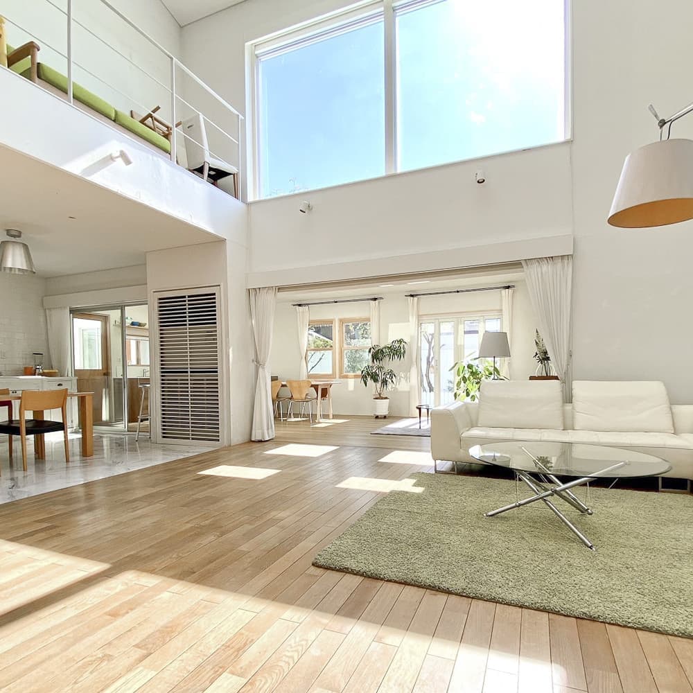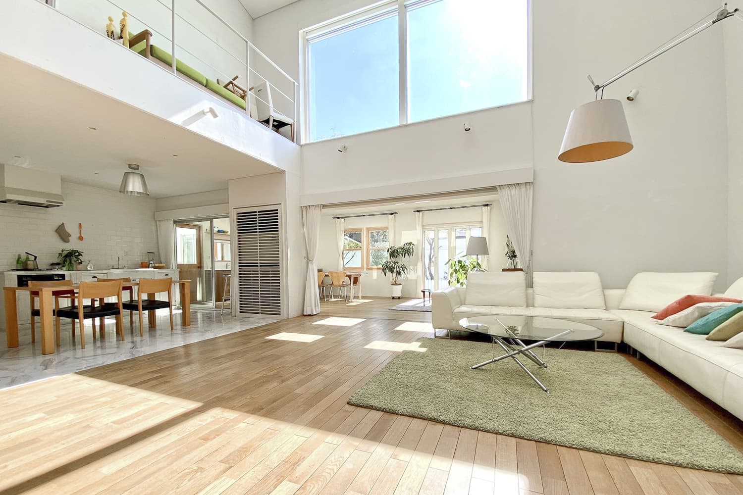 完全遮光ではないですが、天上、南側の2段の大きな窓などは遮光できます。